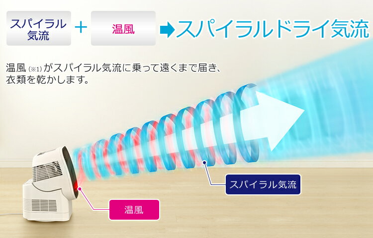 温風をスパイラル気流に乗せることで洗濯物の乾燥時間を短縮する衣類乾燥機カラリエです。