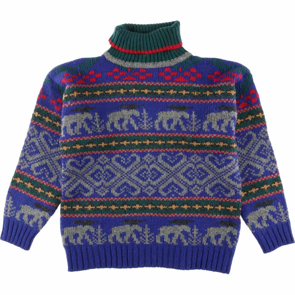90年代 エディーバウアー Eddie Bauer フェアアイル柄 タートルネック ウールニットセーター メンズS ヴィンテージ /eaa090141 【中古】 【201012】