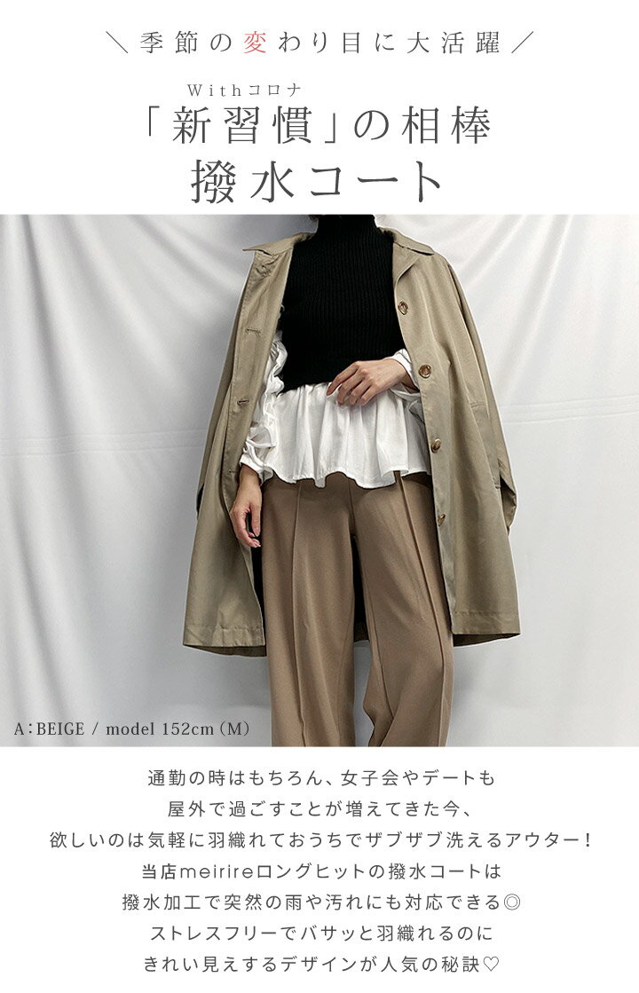 【送料無料】撥水加工&花粉ブロック ライトコート 洗える 秋アウター 冬アウター レディース ステンカラーコート ロングコート フード 長袖 おしゃれ 軽い 薄手 軽量 羽織 雨の日 レインコート代わり 30代 40代 ファッション 通勤 meirire メイリールー