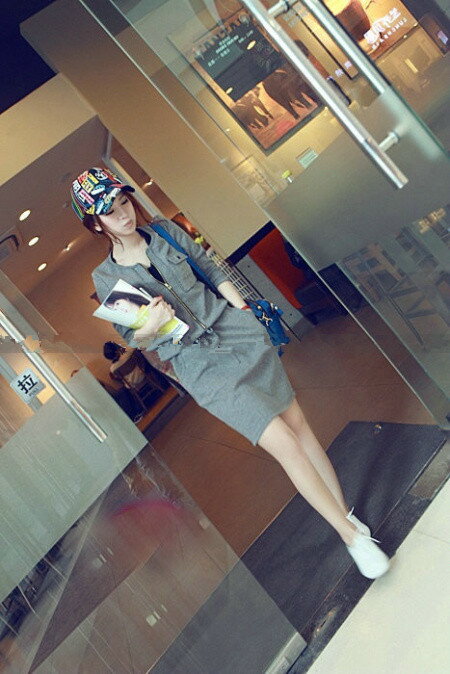 【GirlsAwards対象】 0601楽天カード分割ワンポイントファスナーのグレーワンピース0519★