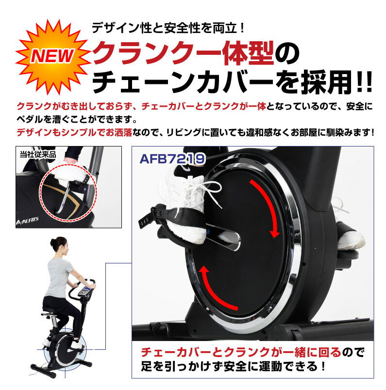 おうちエクササイズ お家エクササイズグッズ エクササイズグッズアルインコ プログラムバイク AFB7219ALINCO プログラムバイク7219 健康管理 運動不足 フィットネスバイク 有酸素運動 健康維持 マグネットバイク ■商品詳細クランク一体型のチェーンカバーを採用し、安全に運動できるとともにシンプルでお洒落なデザインとなっており、リビングに置いていても違和感がありません。