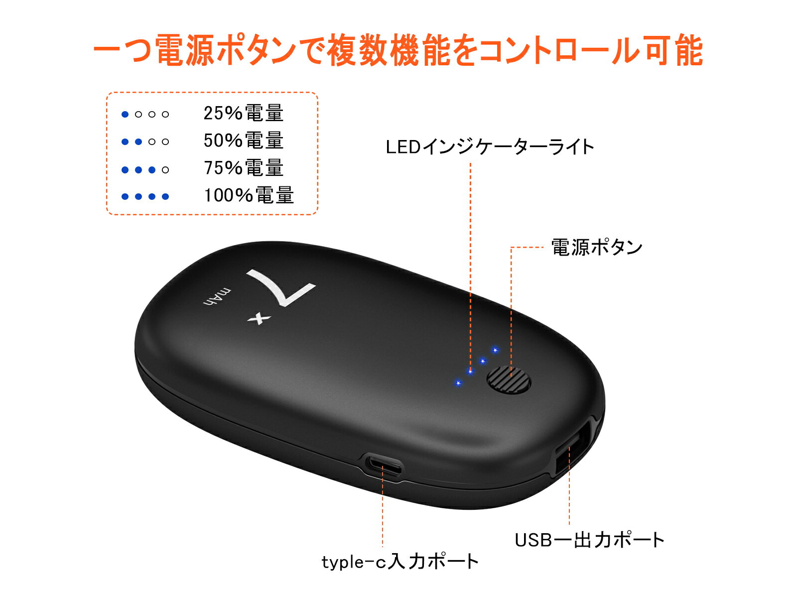 該当カイロは冬に寒さ対策ではなく、緊急時にモバイルバッテリーになる可能です「コンパクトで持ち運び便利」該当電気カイトはだだ135Gですので、高品質なABS材質が採用し、普通の金属製と比べて触感がもっと優しいで、長い時間に握ってしても色褪せません。