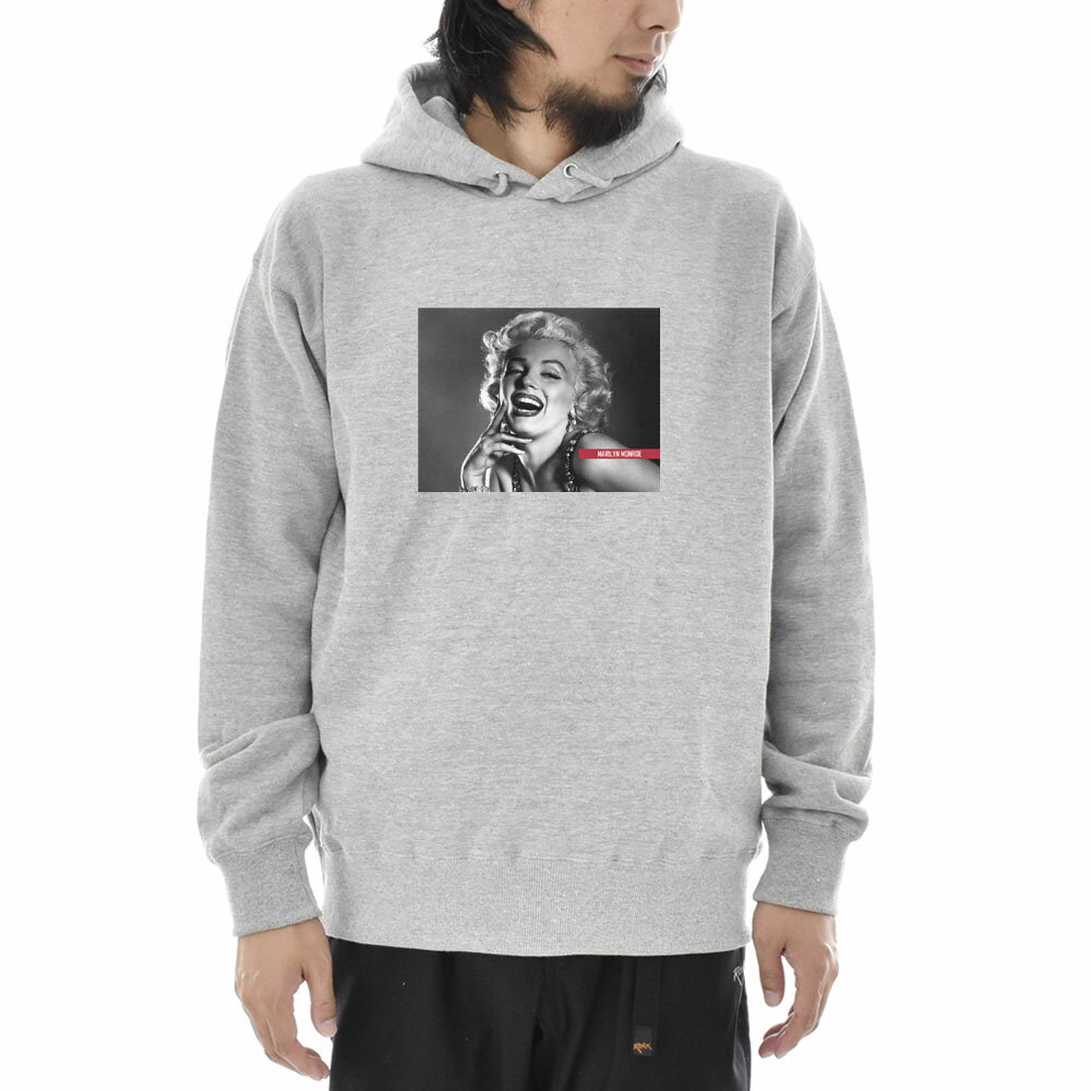 【アートパーカー】マリリン・モンロー パーカー フォト 写真 Pin-up Photography Life is ART ライフ イズ アート 長袖 スウェット スエット ロングスリーブ メンズ レディース 大きいサイズ ビック おしゃれ ガールズプリント S M L XL XXL グレー 灰 ブランド