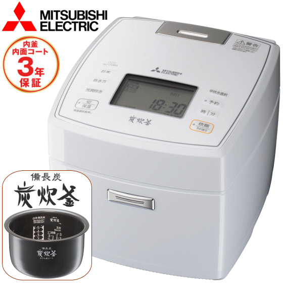2020年 新製品【在庫あり】【内釜内面コート 3年保証】三菱 MITSUBISHI IHジャー炊飯器 NJ-VVB10-W 5.5合炊き 備長炭 炭炊釜 ハードコート80 月白 七重全面加熱 新長粒米モード搭載 うま早・お急ぎモード 玄米 雑穀米 NJ-VVB10 5.5合 炊飯器