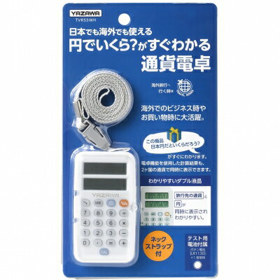 YAZAWA(ヤザワコーポレーション) 通貨電卓 ネックストラップ付き ホワイト TVR55WH