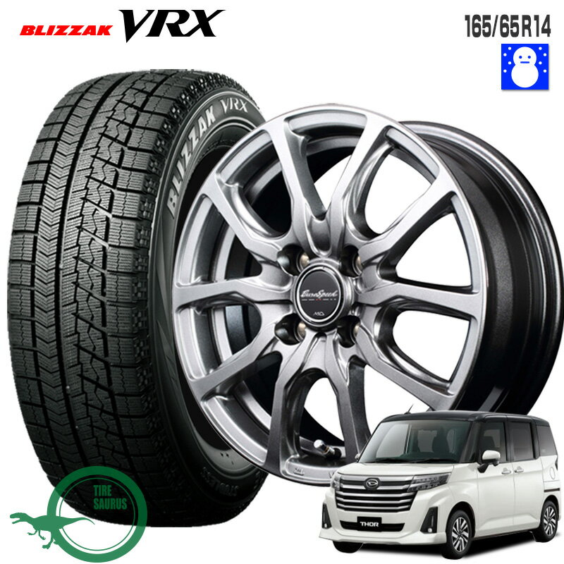 ルーミー トール165/65R14 79Q ブリザック VRX ブリヂストンユーロスピード G52 14×5.5J PCD100/4H +45 JWL メタリックグレー14インチ スタッドレス タイヤ 4本 ホイール セットタンク ジャスティ パッソ 防錆対策 水抜形状