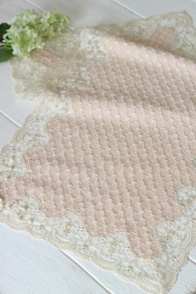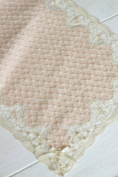 エレガントパール&リボンシリーズ テーブルセンター 40×135cm角 テーブルランナー 布製 リボンモチーフ レース&パール ヨーロピアン ギフト 姫系 可愛い 輸入雑貨 シャビーシック フレンチシャビー アンティーク風 ロココ調