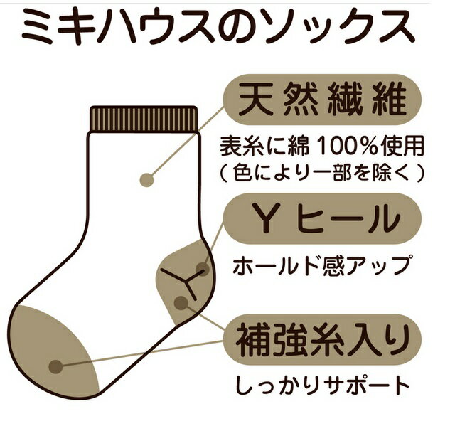 【ミキハウスこだわりのソックス】 表糸には天然繊維の綿100%使用。