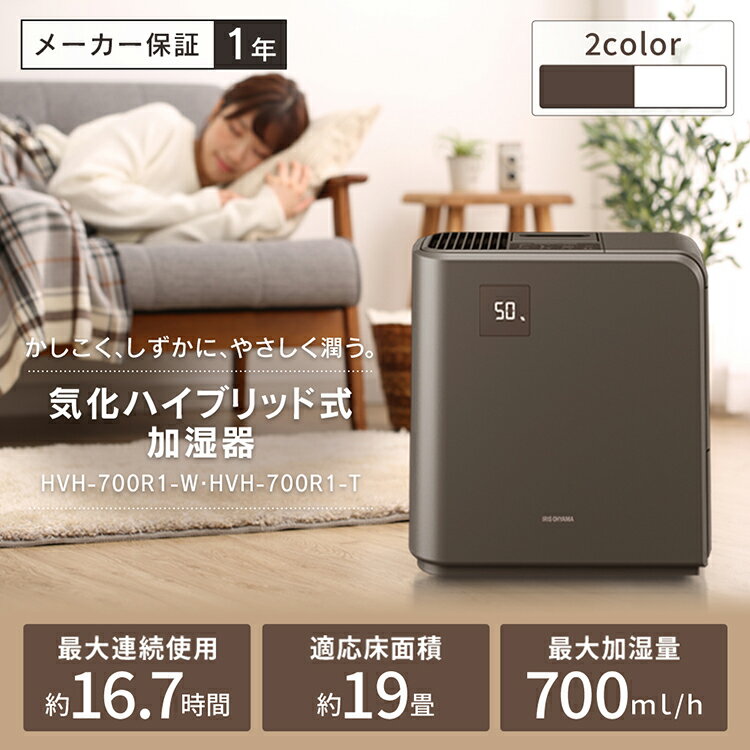 気化ハイブリッド式加湿器700ml HVH-700R1 全2色 送料無料 気化ハイブリッド式加湿器 加湿 加湿器 ハイブリッド 気化 省エネ はいぶりっど 静音 かしつき パワフル 省エネ ぱわふる 潤う かしつ アイリスオーヤマ
