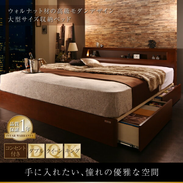 【P5倍★本日12時〜大サービス!】高級ウォルナット材ワイドサイズ収納ベッド プレミアム国産ハードポケットコイルマットレス付き スリムタイプ キング レギュラー丈