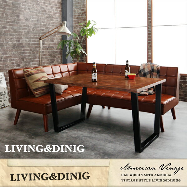 【P5倍★本日12時〜大サービス!】ダイニングセット(テーブル&ソファ) 古木風 ヴィンテージ アメリカンスタイル リビングダイニング 4点セット(テーブル+ソファ1脚+アームソファ1脚+チェア1脚) 右アーム W120